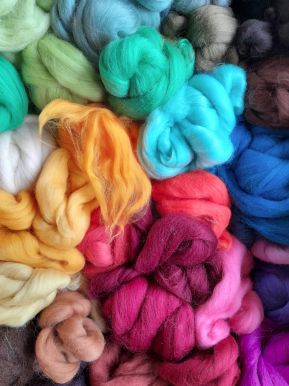Laine mérinos lavée, cardée et teinte.
