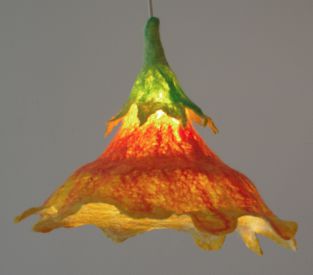 Regrettant que la majorité des abat-jour en feutre occultent la lumière au lieu de la tamiser, j'ai choisi de fabriquer pour mes luminaires l'étoffe la plus fine possible.